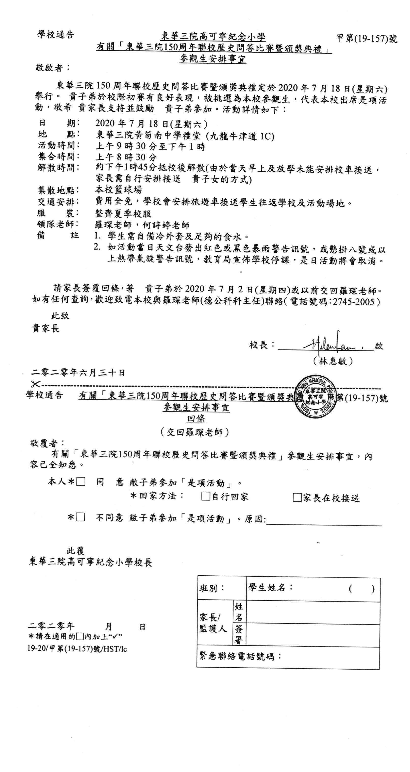 學校通告: