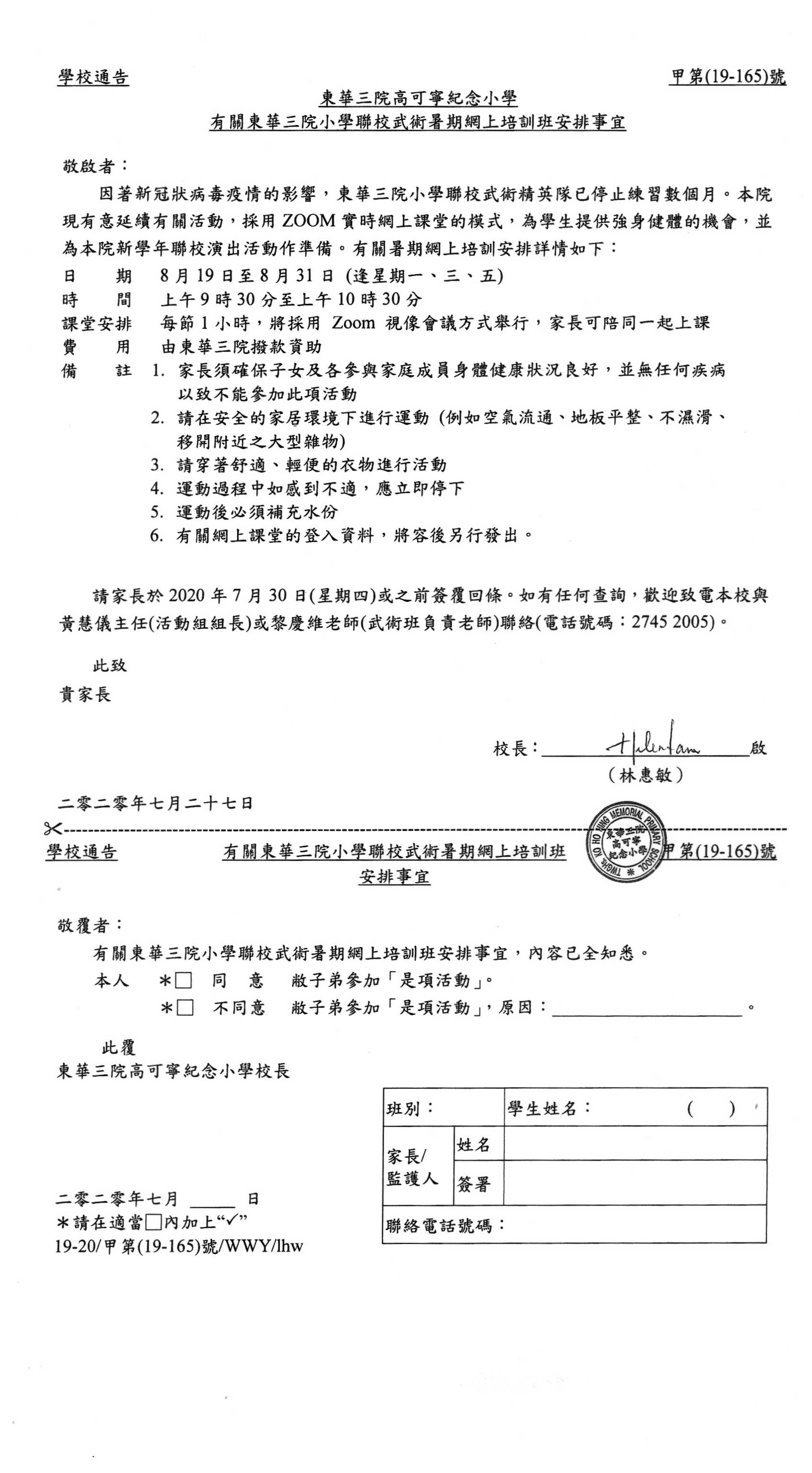 學校通告: